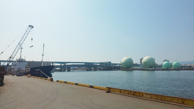 オイルターミナルでの積み込み作業