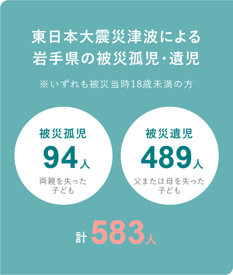 2011年3月の東日本大震災津波で親を失った子どもが多数います。