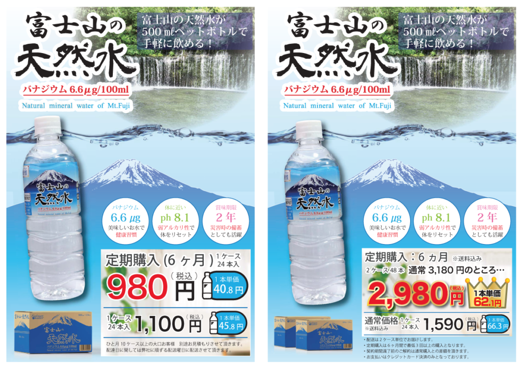 ウォーター事業部新商材!!「富士山の天然水ペットボトル500㎖×24本」
