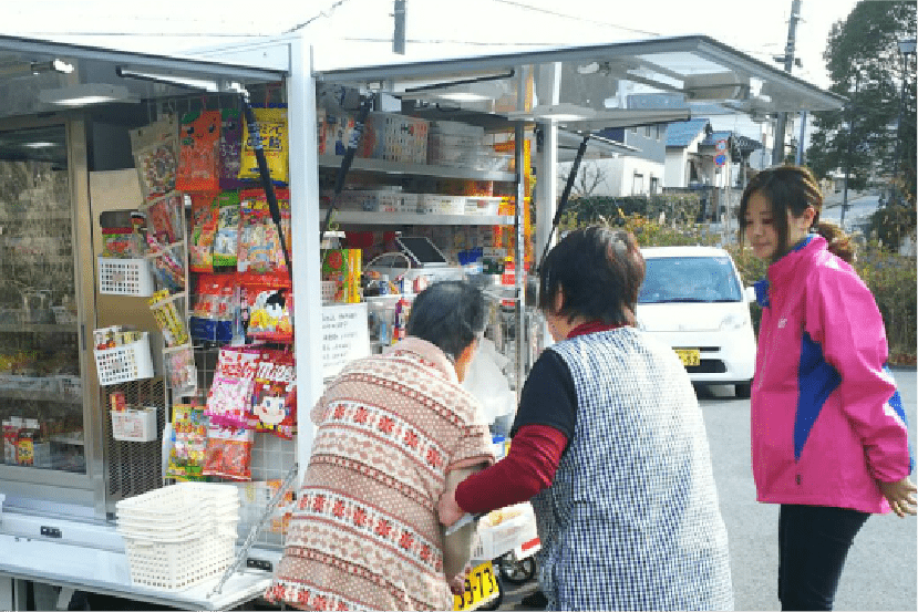 軽トラに食品や日用品などを積んでルート配送する「移動コンビニ」。