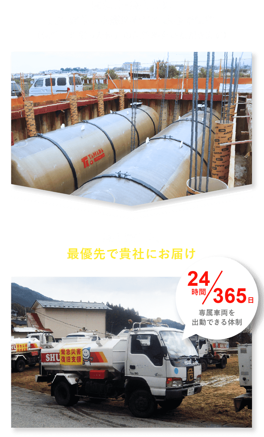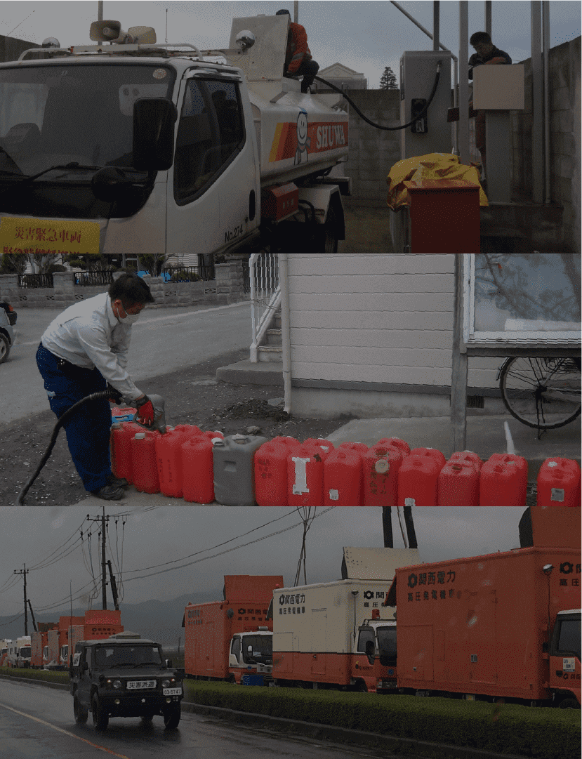 - ◉不明者捜索やがれき撤去に使う重機への軽油供給