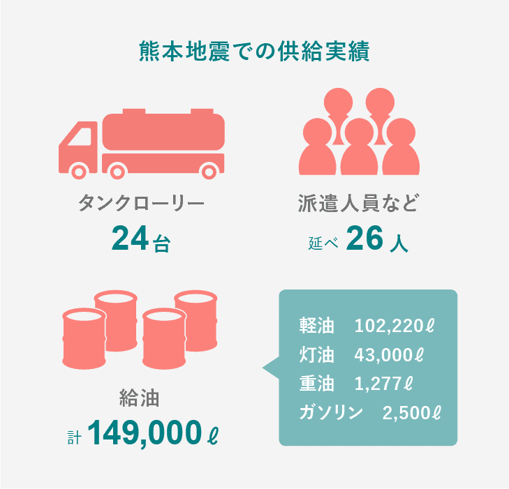 被災地に燃料供給や救援物資配送を行いました。