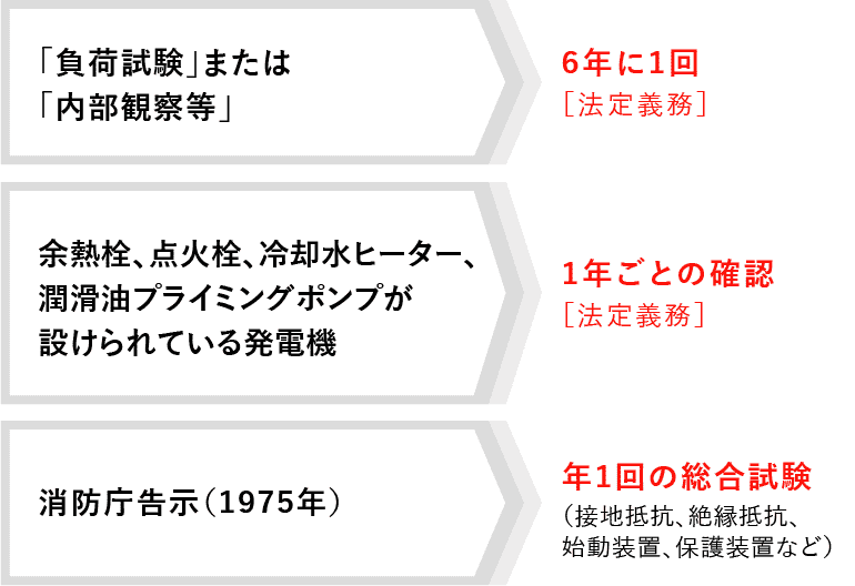 そこで、非常用発電機の「定期点検」と「負荷試験」の実施をおすすめします。