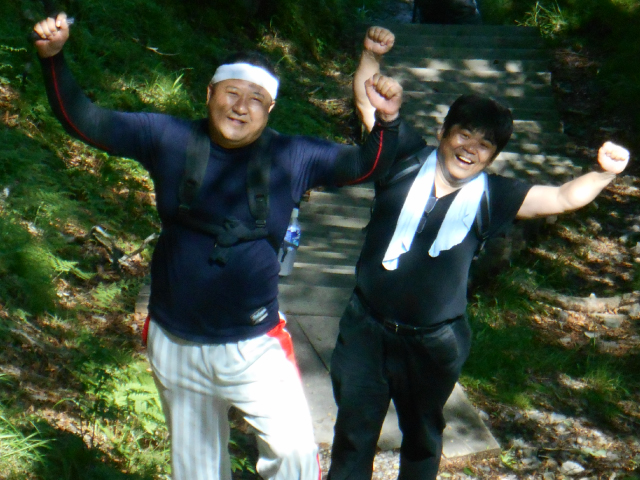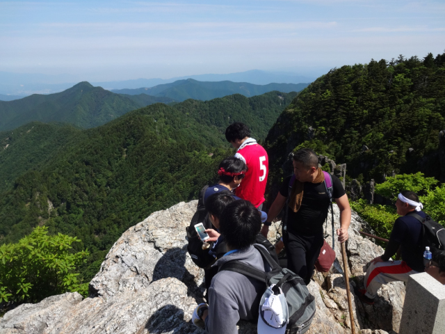天候は快晴と絶好の登山日和で新入社員の門出を祝っているかのようでした。頂上の大峰山寺には10時30分頃と去年よりペースがよく頂上から見る山々は吸い込まれるような緑が広がり遠くの山もくっきり見えるほどでした。下りはレンゲ辻という修験道にて下山します。