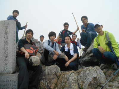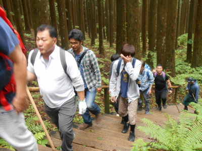 参加メンバーは朝5:30にシューワ本部をバスに乗り出発し、2時間ほどで大峰山の麓に到着しました。今回のメンバーは14名中、約半数近くが登山初心者ということで全員で登りきれるかどうか心配ではありましたが、全員が声を掛け合い助け合い、一人も欠けることなく頂上まで登りきることが出来ました。山頂までに掛かった時間は3時間
