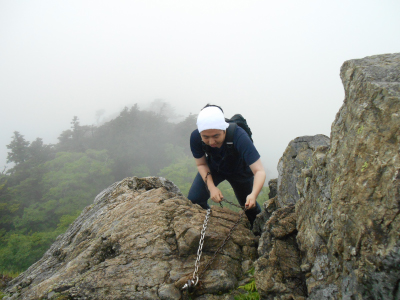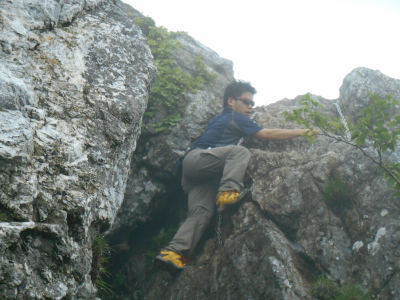 終盤で、危険な断崖絶壁を鎖につかまり登る場