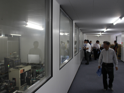 ホテルを出発し約30分。まずはじめに到着したのは、ミツウロコビバレッジ様の山中湖工場。平成22年3月竣工のペットボトル製品専用工場を見学させて頂きました。最新型の生産設備と生産技術を導入し、高品質な製品を生産されています。