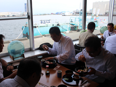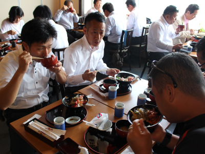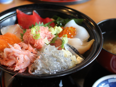 ここで皆さんお待ちかねの昼食タイムです。静岡県静岡市にある清水港『清水魚市場 河岸の市』。ここで海鮮丼を頂きました。