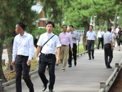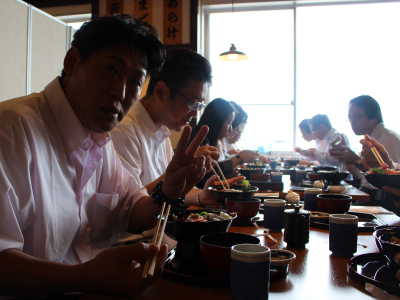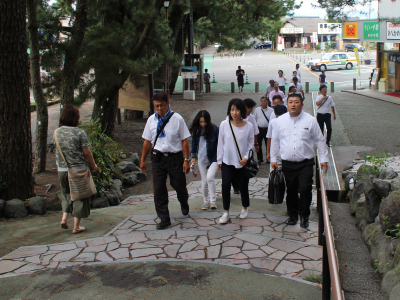 8月26日にシューワスタッフで社員観光旅行を行いました。20名のシューワスタッフが参加いたしました。先日の富士山登山の次の日に行う観光旅行ということで登山メンバーは少しお疲れのようでした。朝ホテルでバイキング形式の朝食を済ませたスタッフは、バスに乗り8:30出発。
