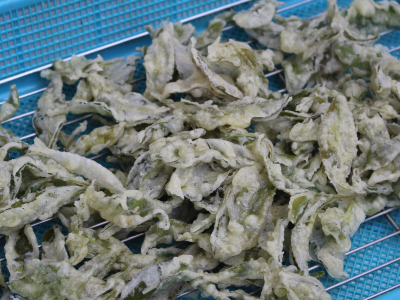 お茶摘み体験の後は、美味しいお茶とお茶の葉のてんぷらを頂きました。