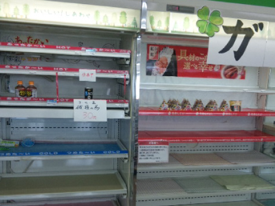 シューワブログ 東日本大震災復興支援活動 コンビニエンスストアの商品は 2011.03.27 東日本大震災復興支援活動 コンビニエンスストアの商品は 中井正隆 2011.03.27 東日本大震災復興支援活動 現在大船渡市に移動中です。 花巻市からの中継地点の遠野市のファミマ店舗に立ち寄りました。 ほとんど商品はありませんでした。 筆者:中井 正隆 « 前の記事へ 次の記事へ » RELATED POST 関連ブログ 2011.05.01 桜が開花し始めて、月夜の海も大変綺麗です 東日本大震災復興支援活動 2011.03.27 ラジオやテレビで何度も被災地の現状を聞いていましたが 東日本大震災復興支援活動 2011.04.07 土どう詰め込み作業を行いました 東日本大震災復興支援活動
