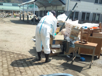 今日はテレビ等で取り上げられた、40人ほど亡くなった大船渡の老人ホームの隣の診療所で、診療所が再開するため畳みを出したり、瓦礫を棄てたり、使えなくなった機械を出したりしました。