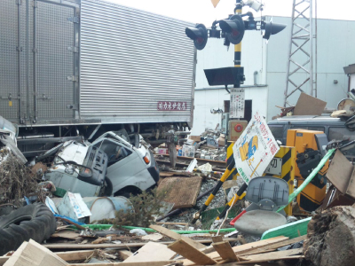 まだ、津波によってひっくり返った車など線路に横たわっています。