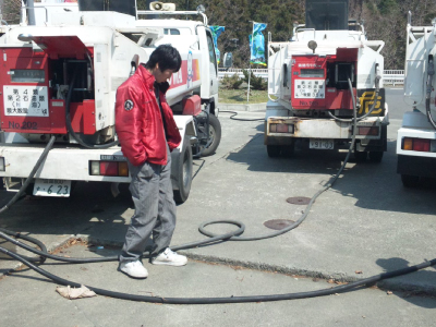 4月13日は津波で被害をうけた、宮古市に行ってガソリンスタンドの地下タンクに軽油を入れてきました。