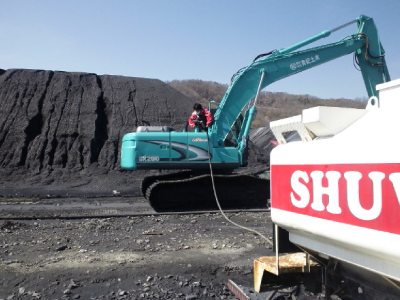 頼もしい重機へ給油風景