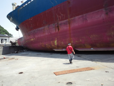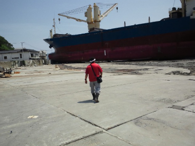 釜石で活動の合間に一番大きな船舶が津波に押し上げられた場所に立ち寄りました。